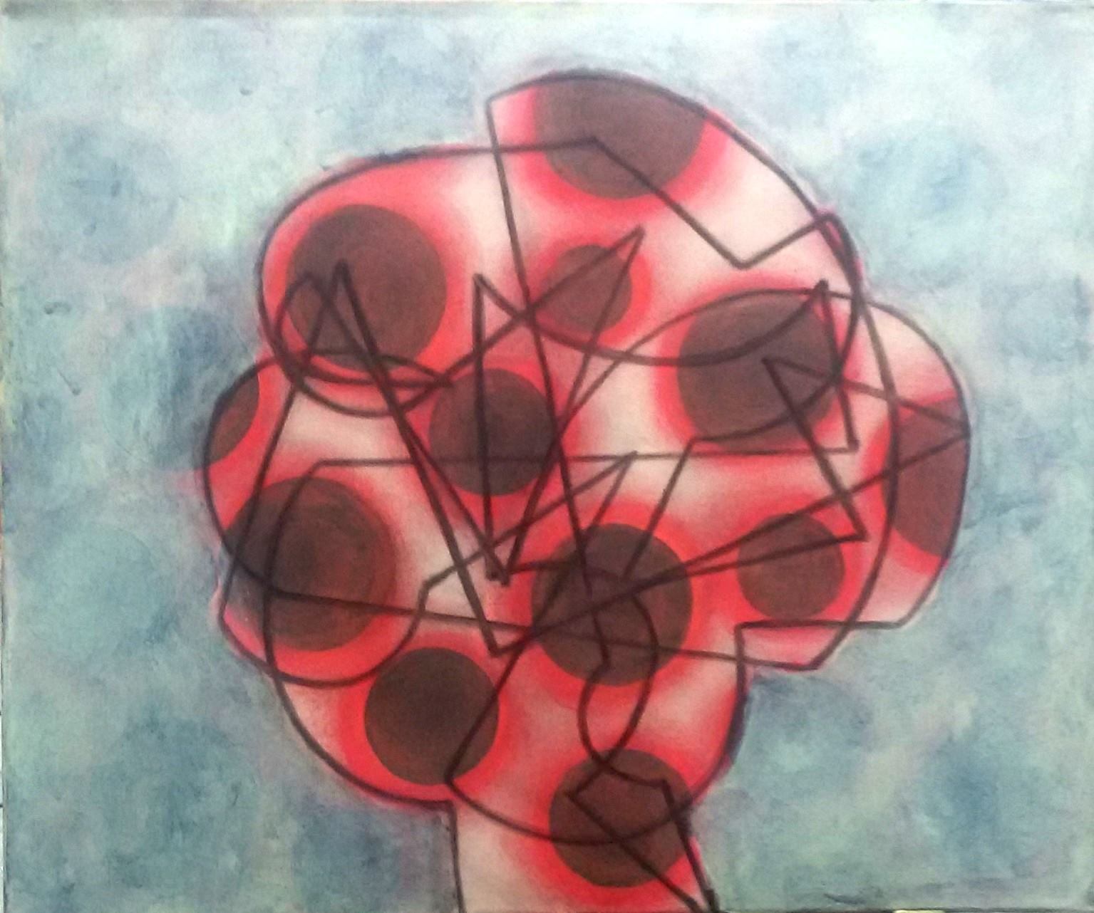Mira Cadar presents a portrait from her abstract portrait series (2015), which explores distraction and the act of focusing on sensation. The exhibited work depicts a multiplicity of voices forming a false consciousness — a field of overlapping, conflicting, and often dissonant signals that seek to present themselves as a single coherent voice